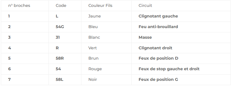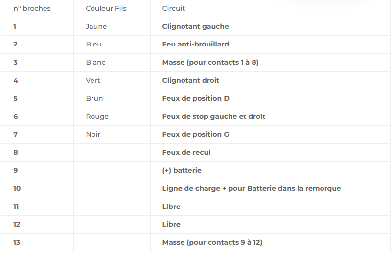 Schéma électrique de la prise remorque 12 V 13 broches DIN