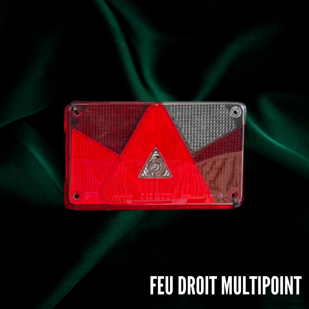 Le feu arrière droit Multipoint 5 est un bloc optique complet conçu pour équiper le côté droit de votre remorque. Il comprend l’ensemble des fonctions essentielles pour une signalisation arrière complète et conforme : feu stop, feu de position, clignotant, feu de recul, avec en plus un éclaireur de plaque intégré.